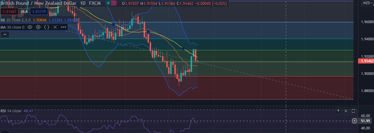 • Strong support is seen at 1.9137(38.2% fib ) and break below could take the pair towards 1.8965(23.6 % fib).