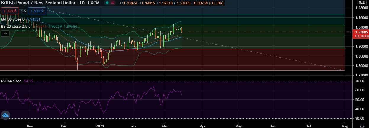 • GBP/NZD declined on Monday as higher U.S. Treasury yields added pressure on currencies like the pound.