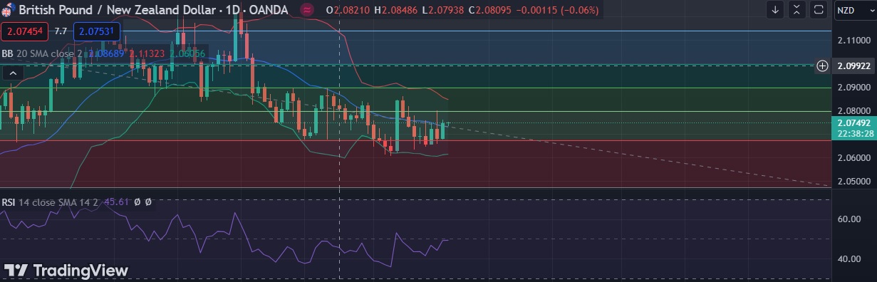 • Strong support is seen at 2.0676 (23.6% fib)and break below could take the pair towards 2.0622 (Lower BB).