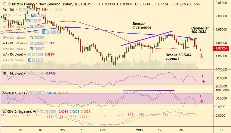 - GBP/NZD has broken below 50-DMA support raising scope for further downside.
