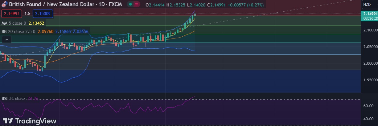 • Immediate resistance is located at 2.1534(Daily high), any close above will push the pair towards 2.1585(Higher BB).