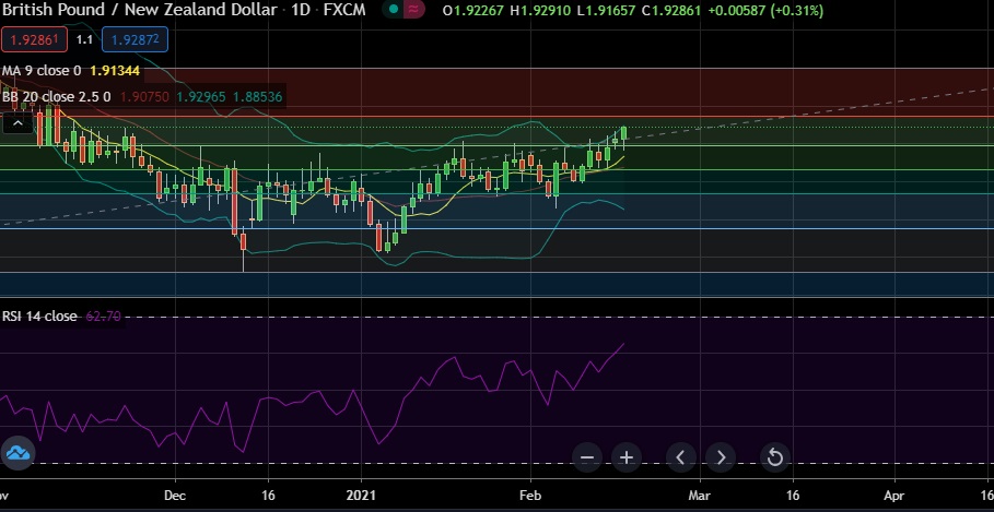 • GBP/NZD rose higher on Tuesday as UK's rapid rollout of COVID-19 vaccines buoyed sterling further.