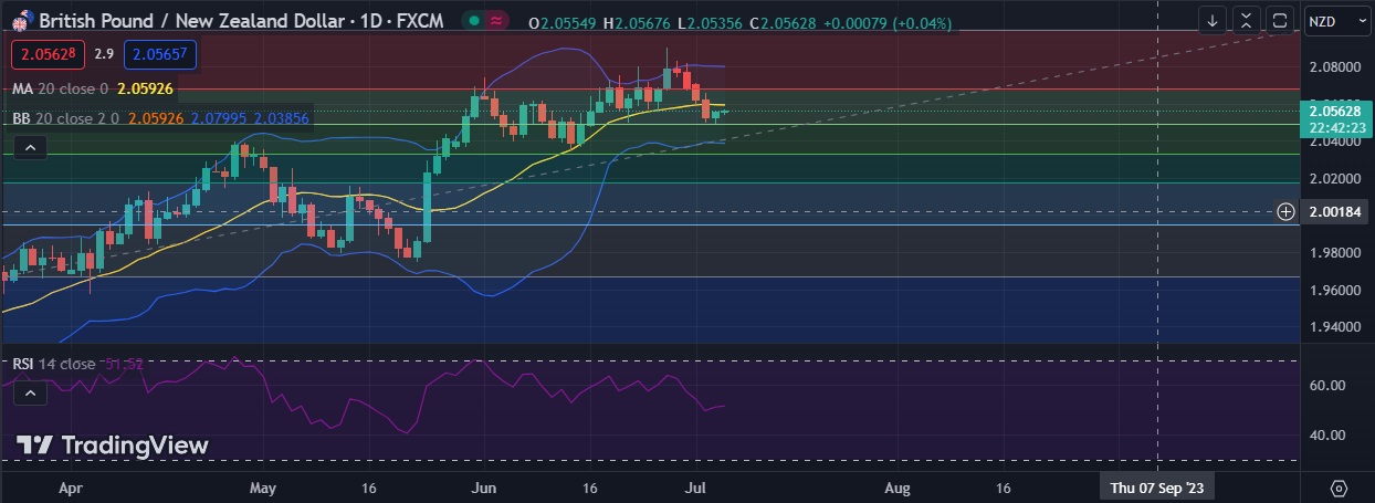 • Strong support is seen at 2.0488 (38.2% fib ) and break below could take the pair towards 2.0390(Lower BB).