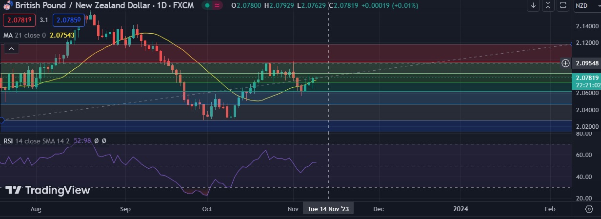 • Immediate support is seen at 2.0754 (21DMA) and break below could take the pair towards 2.0724 (50%fib).