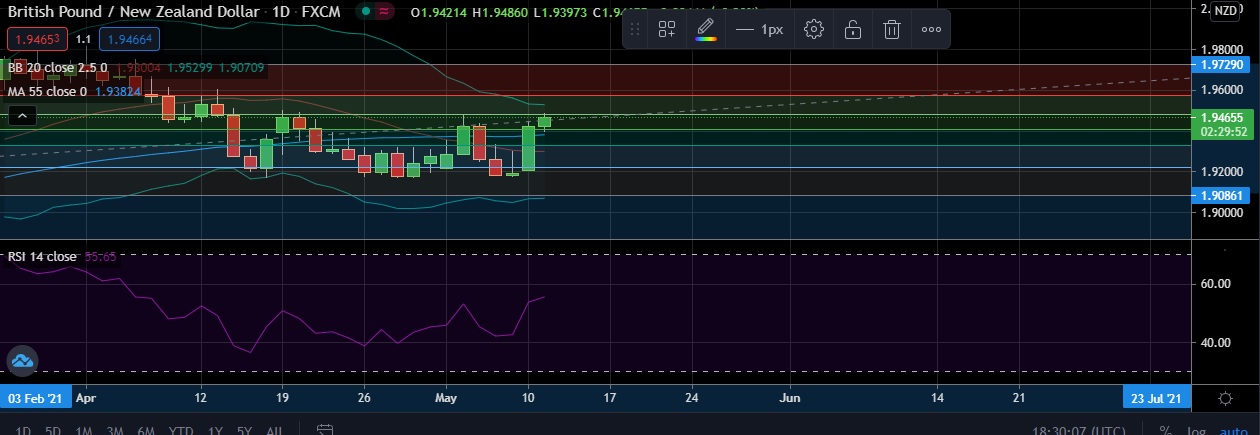 • GBP/NZD gained on Tuesday as improved economic figures, lockdown easing measures, and relief about the result of the Scottish political race supported sterling.