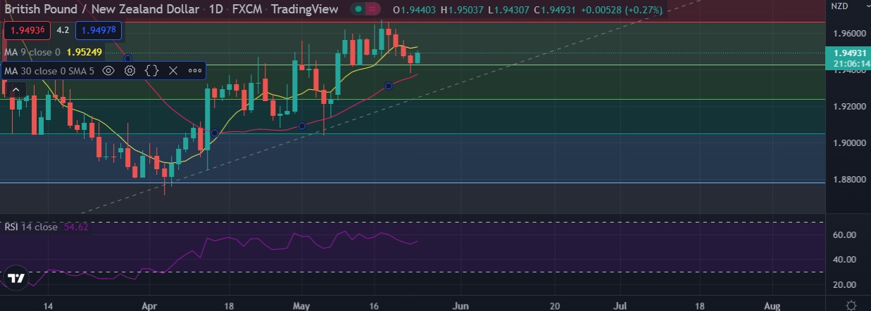 • Strong support is seen at 1.9428 (38.2%fib ) and break below could take the pair towards 1.9373 (30DMA).
