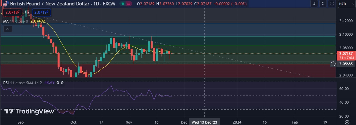 • Immediate support is seen at 2.0708 (38.2% fib) and break below could take the pair towards 2.0545(23.6% fib).