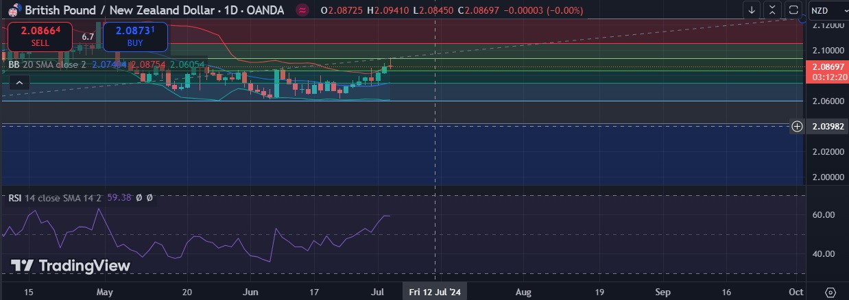• Immediate resistance is located at 2.0931(38.2% fib), any close above will push the pair towards 2.1124 (Higher BB).