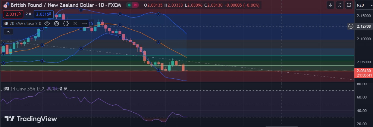 • Strong support is seen at 2.0288 (23.6%fib) and break below could take the pair towards 2.0103 (Lower BB).