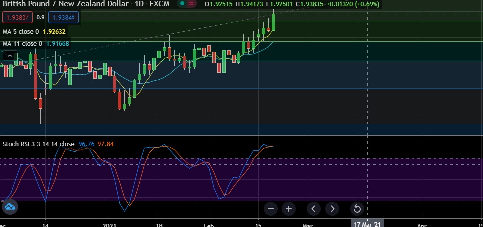 • GBP/NZD rose on Thursday as sterling continued its upward march supported by speedy UK’s rollout of COVID vaccines .