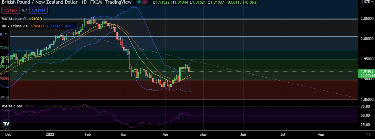 • At GMT 22:25 , the pair was trading 0.02% lower at 1.9188. The cross pairs bearish bias is set to strengthen, likely to drop towards 1.9000