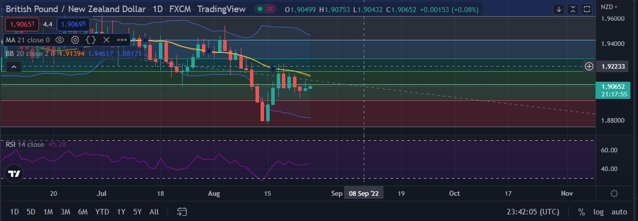 • Strong support is seen at 1.9000 (psychological level) and break below could take the pair towards 1.8949 (23.6% fib).