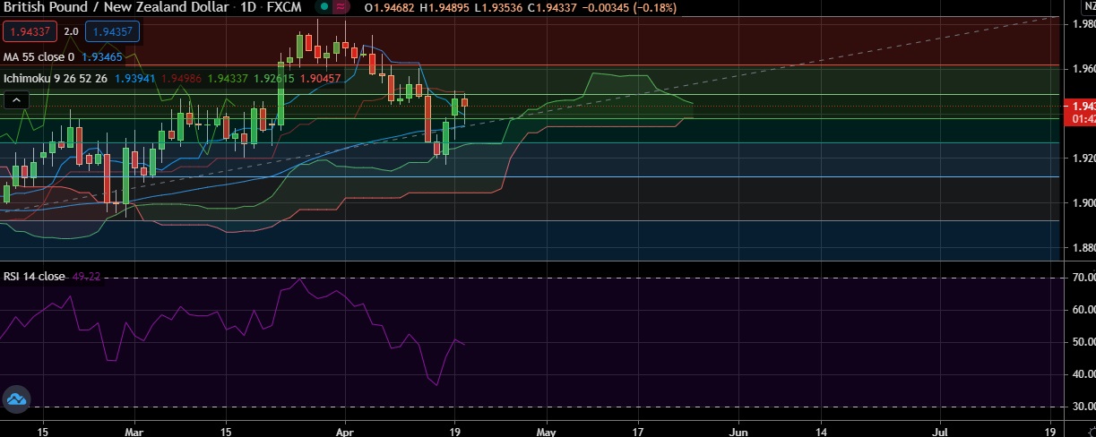 • Immediate support is seen at 1.9378 (50%fib) and break below could take the pair towards 1.9346 (55DMA).