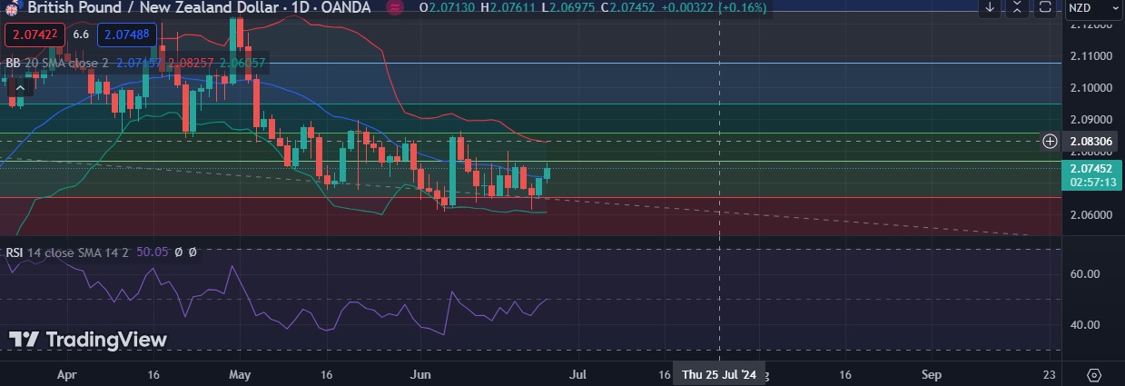 • Immediate support is seen at 2.0651 (23.6%fib) and break below could take the pair towards 2.0604 (Lower BB).