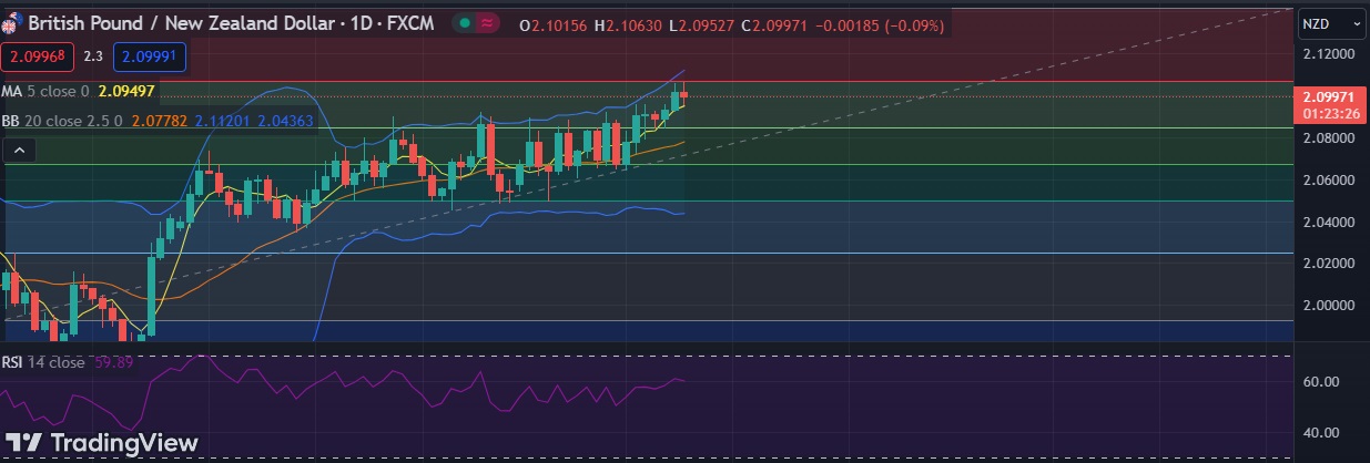 • At GMT 19:35, the pair was trading down 0.09 percent at 2.0996 , daily close above 23.6%fib will increase the scope for much bigger gains.