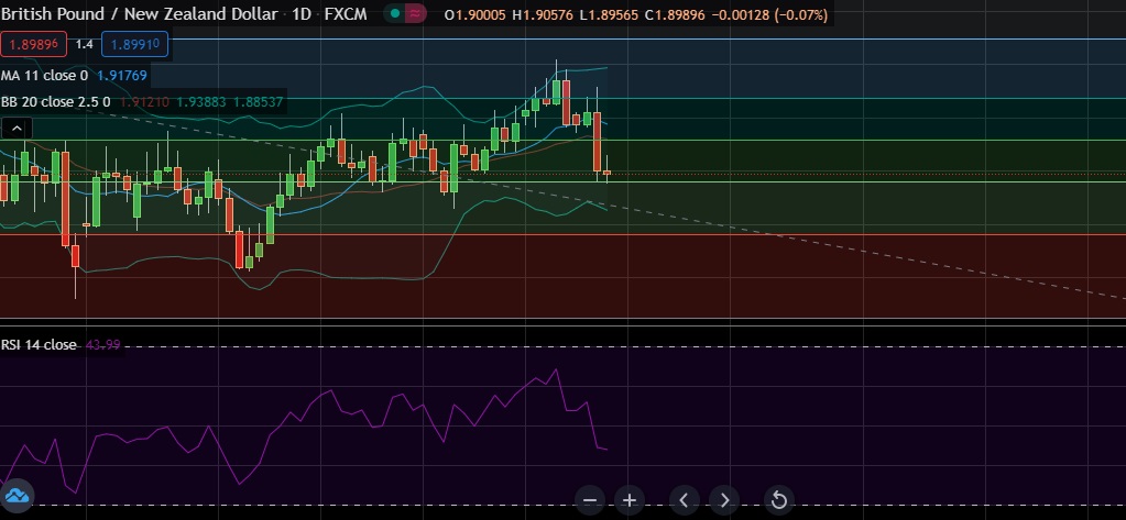 • Strong support is seen at 1.8960 (38.2%fib) and break below could take the pair towards 1.8852 (lower BB).
