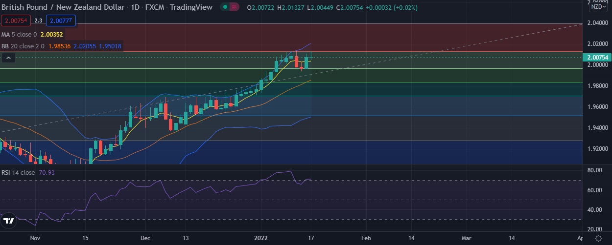 • At GMT 18:53, the pair was trading 0.65% higher at 2.0075, slightly lower from session high at 2.0129.