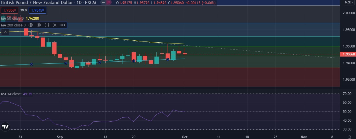 • Immediate support is seen at 1.9482 (38.2%fib) and break below could take the pair towards 1.9445(200DMA).
