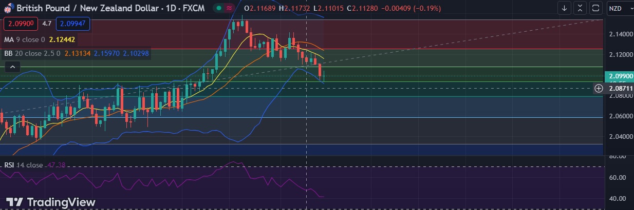 • The pair remains weak and might fall towards 2.0800 due to recession fears in the UK despite more hawkish BoE rate path.