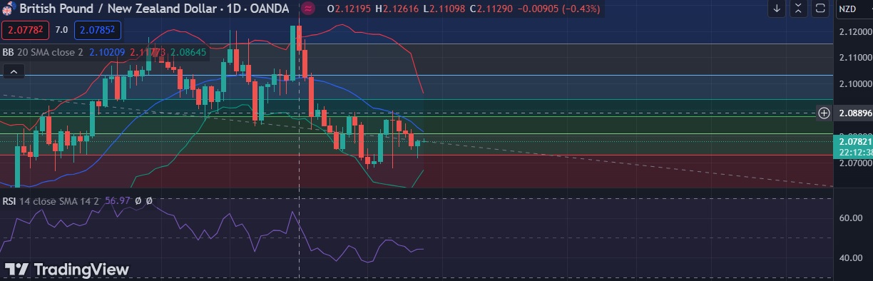 • Strong support is seen at 2.0725 (23.6%fib ) and break below could take the pair towards 2.0674 (Lower BB).