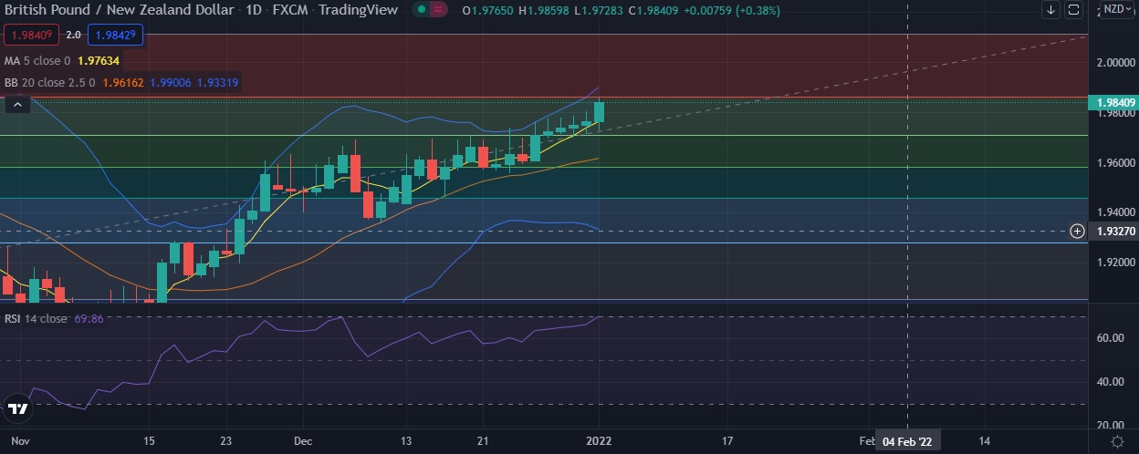 • Strong support is seen at 1.9760(5DMA) and break below could take the pair towards 1.9709(38.2%fib).
