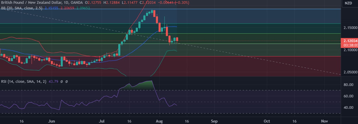 • Immediate support is seen at 2.1136(38.2%fib) and break below could take the pair towards 2.0963 (Lower BB).