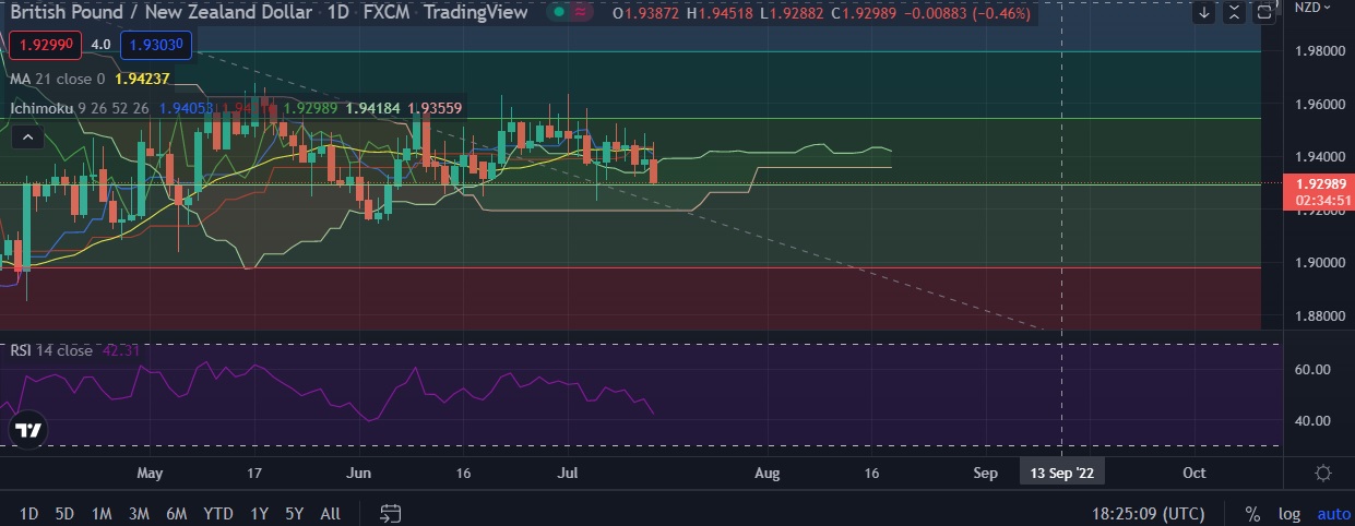 • Strong support is seen at 1.9291 (38.2%fib) and break below could take the pair towards 1.9192 (Ichimoku Cloud Base).