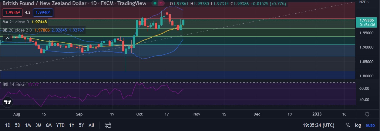 • GBP/NZD strengthened on Tuesday as sterling gained on optimism that political and economic turmoil will calm following the appointment of Rishi Sunak as UK PM.