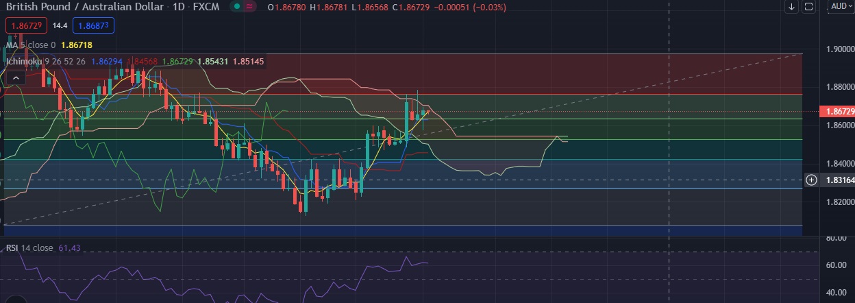 • Immediate resistance is located at 1.8706 (Ichimoku Cloud Top ), any close above will push the pair towards 1.8764(23.6%fib).