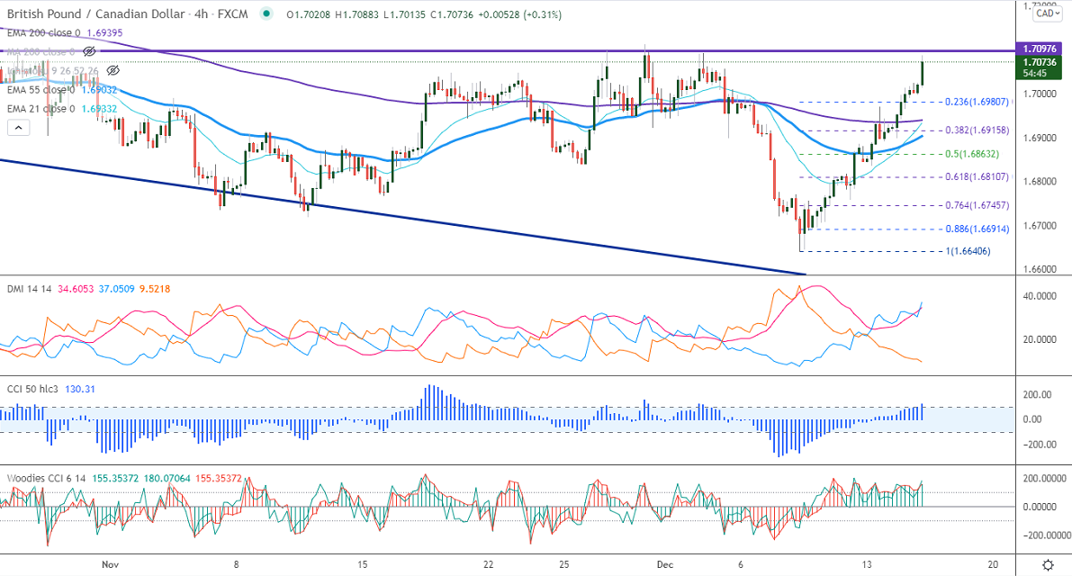 GBPCAD recovered more than 440 pips on the weak Canadian dollar. The Canadian dollar is trading weak against the US dollar on fears of the Omicron coronavirus and policy divergence between the US Fed and BOC. USDCAD hits a multi-week high around 1.28650 and any breach above 1.2950 confirms further bullishness.