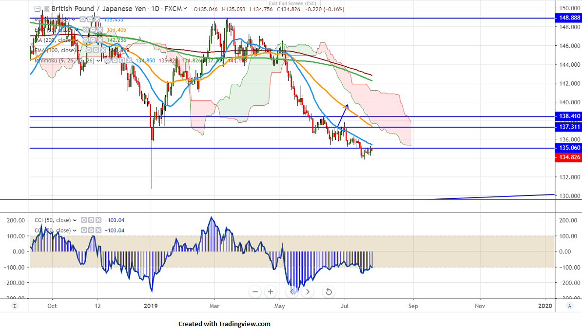 GBPJPY is trading slightly lower after a jump till 135.27 level yesterday. The pair is struggling to close above 135 on a slight weakness in Pound sterling. GBPUSD has lost more than 50 pips from a high of 1.25220 level.