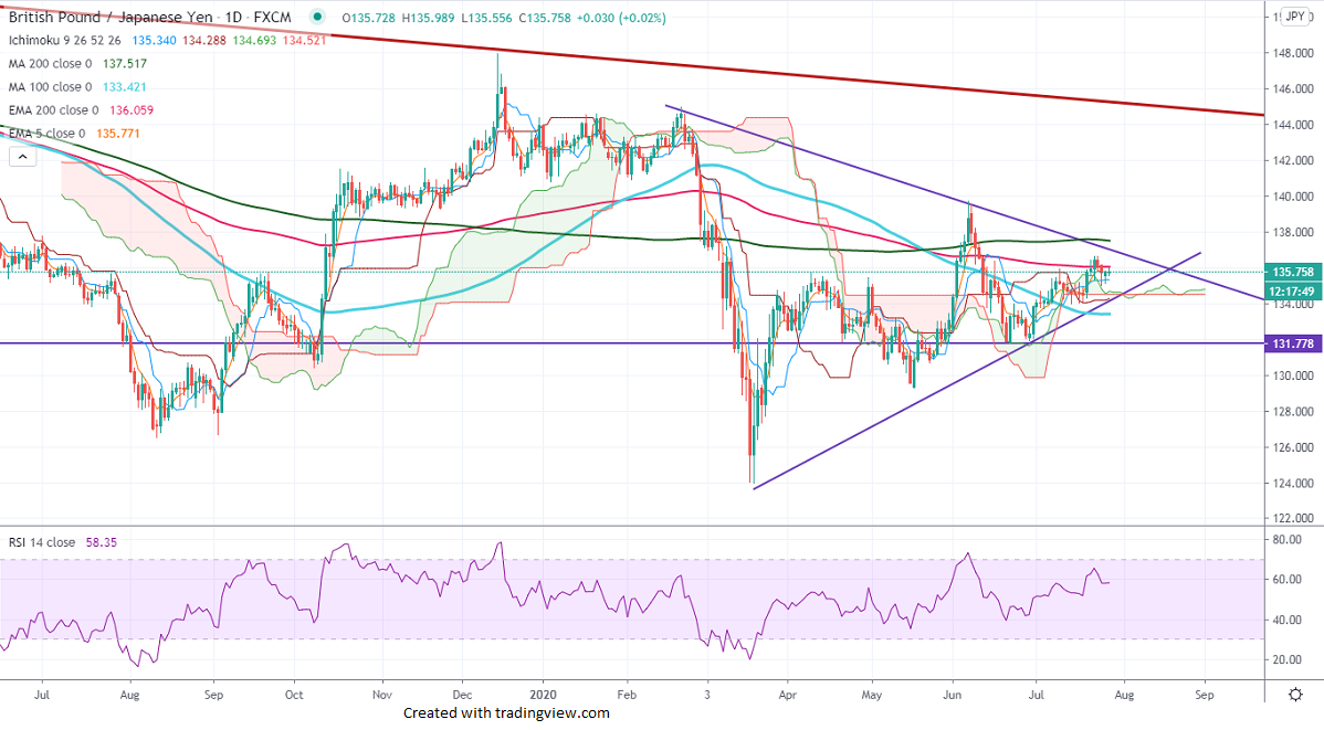 The near-term support is around 135, any indicative break below will drag the pair down till 134/131.75 is possible.