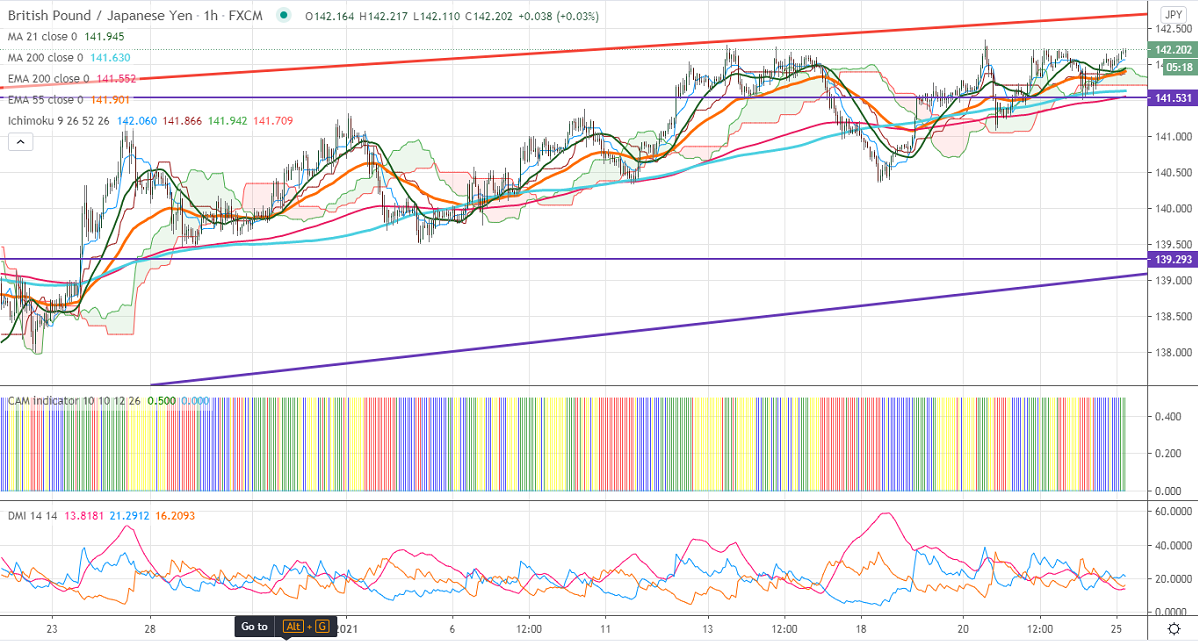 It is good to buy on dips around 141.50 with SL around 141 for the TP of 142.70/144.