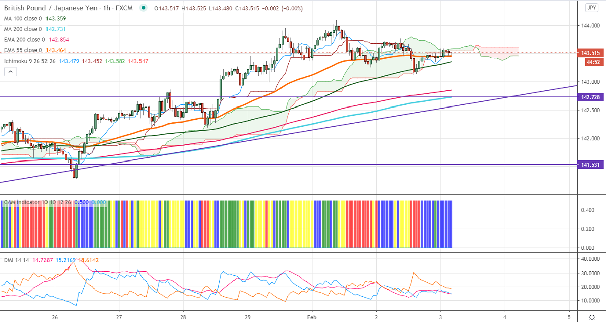 The pair's significant resistance at 144.10, any convincing break above targets 145/146.10. On the lower side, near term support is around 142.70, and any violation below targets 142.20/141.80/141.20.