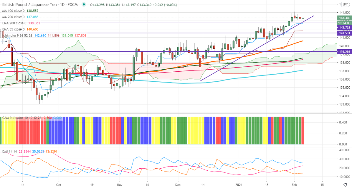 The pair's significant resistance at 144.10, any convincing break above targets 145/146.10. On the lower side, near term support is around 143, and any violation below targets 142.20/141.80/141.20.