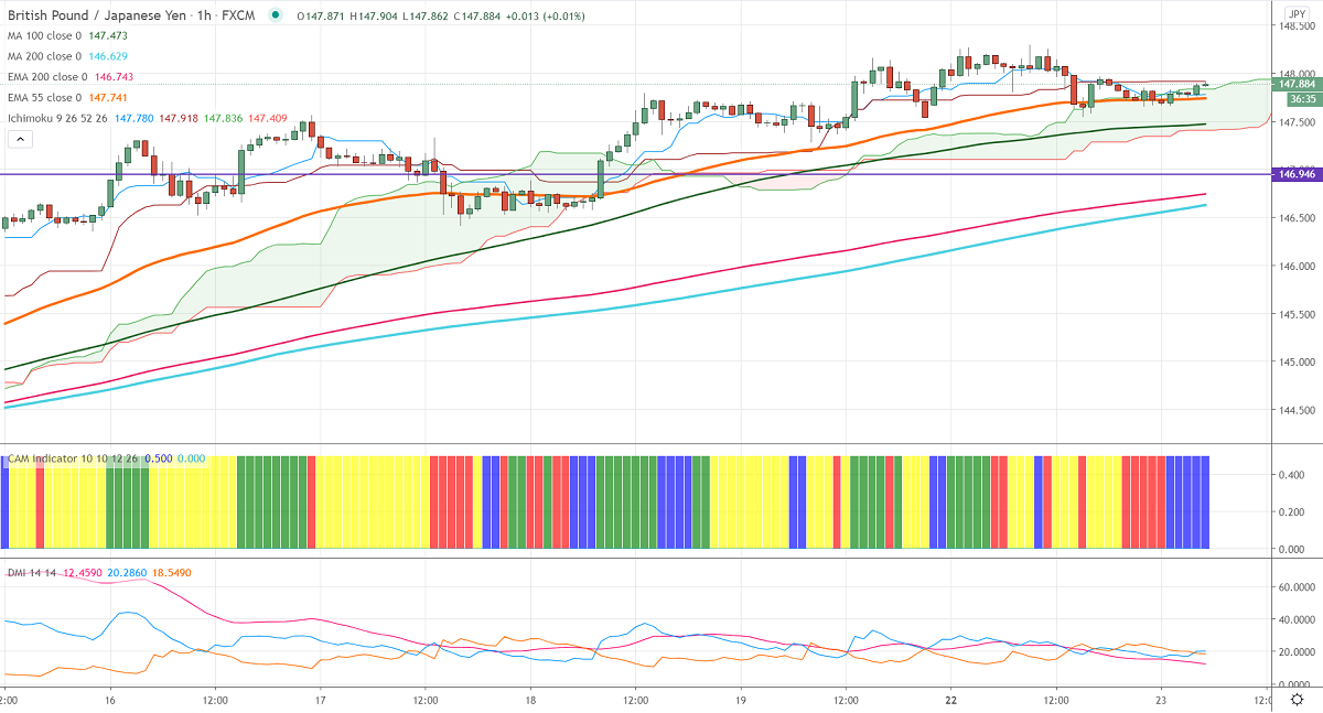The pair is facing significant resistance at 148.80, a jump till 150/151.20 possible. On the lower side, near-term support is around 147.20. An indicative break below will drag the pair down to 146.80/146.30. Significant trend reversal only below 144. A violation below will drag the pair to 142.80.