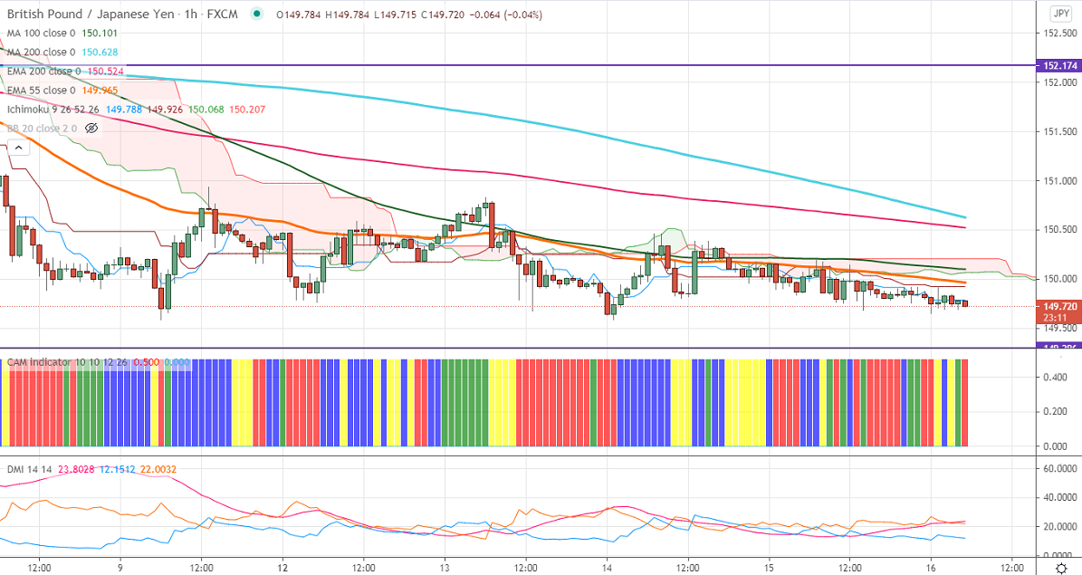 Ichimoku Analysis- The pair is trading slightly below hourly Kijun-Sen and below the cloud, Tenken-Sen. Any break above 150.65 confirms intraday bullishness.