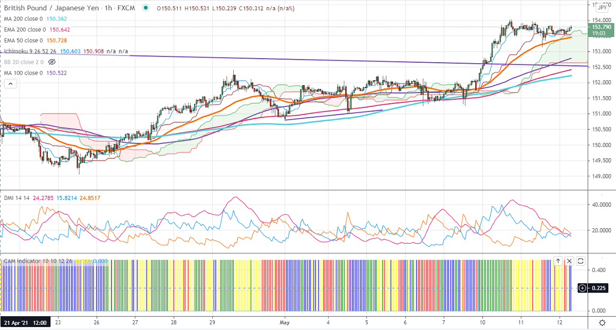 GBPJPY is consolidating after hitting three years high at 154.02. The surge in pound sterling for the past two weeks is supporting the pair at lower levels. GBPUSD is holding well above 1.4000 on a sharp decline in the number of corona-related deaths and easing restrictions. UK final GDP rose by 2.1% in Mar compared to a forecast of 1.5%. While UK's First Quarter GDP contracts by 1.5% slightly above economists' 1.7% drop. USDJPY is trading below 200-W MA and any violation above 109.07 confirms intraday bullishness. The intraday trend of GBPJPY is bullish as long support 153.40 holds.