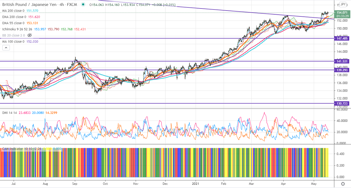 GBPJPY is trading flat with no follow-through buying. GBPJPY was one of the best performers in the past three weeks and surged more than 3.5% on broad-based Pound sterling buying. The pound sterling jumped more than 80 pips after forming a minor bottom around 1.40160. GBPUSD should break below 1.4000 for further weakness. USDJPY eased some of its gains on Friday and holding above 109 level. It should break above 109.80 for further bullishness. The intraday trend of GBPJPY is bullish as long support 153 holds.