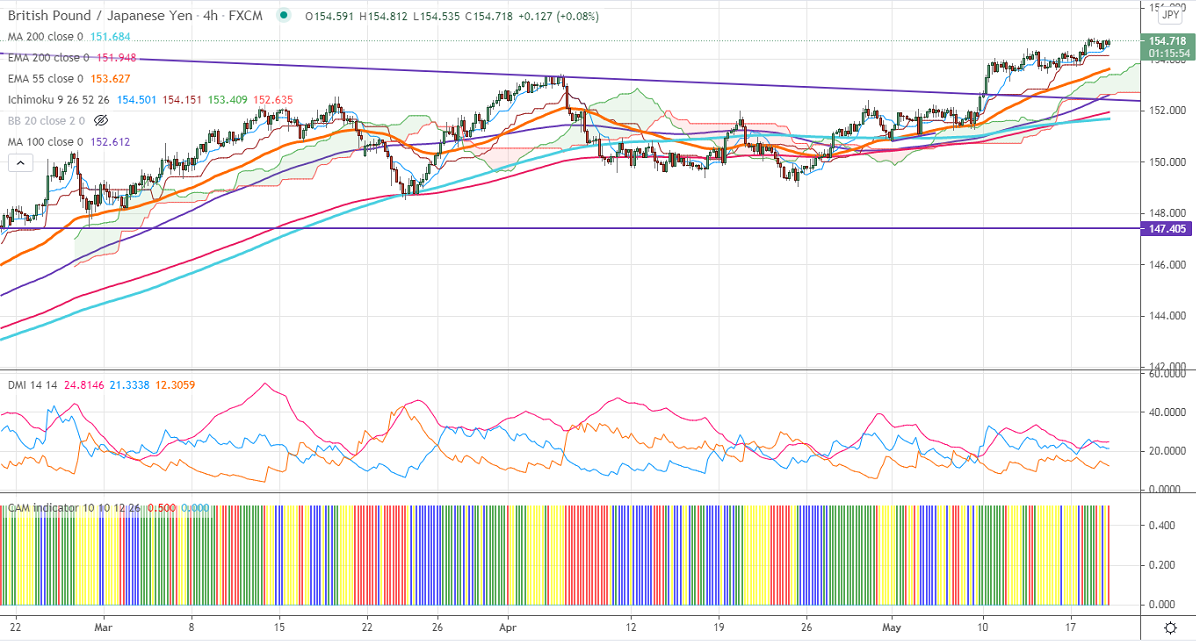 GBPJPY is trading in a narrow range between 154.83 and 154.39 for the past two days despite strong Pound sterling. GBPUSD surged sharply and jumped above 1.4200 on upbeat UK jobs data and broad-based US dollar selling. Markets eye UK CPUI data which is to be released today for further direction. Any breach above 1.4240 confirms a bullish continuation. USDJPY is struggling to close above 109 levels. A dip below 108 confirms bearishness. The intraday trend of GBPJPY is bullish as long support 154 holds.