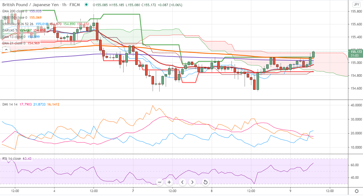 The pair's near-term resistance around 155.30, any break above confirms intraday bullishness. A jump till 155.82/156.10/156.60 is possible. On the lower side, near-term support is around 154.50. Any indicative violation below that level will drag the pair down to 154.35/153.75/153. Significant trend reversal only if it breaks below 153.
