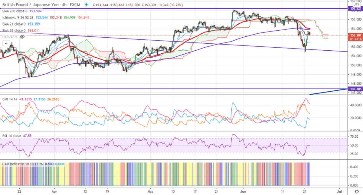 The pair's near-term resistance around 153.91, any break above confirms intraday bullishness. A jump till 154.35/155/156.10 On the lower side, near-term support is around 153. Any indicative violation below that level will drag the pair down to 152/151.30. Significant trend reversal only if it breaks below 147.40.
