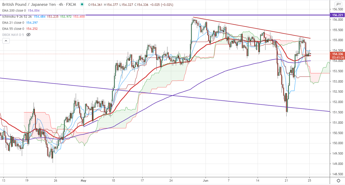 It is good to sell on rallies around 154.50-55 with SL around 155.15 for a TP of 153.