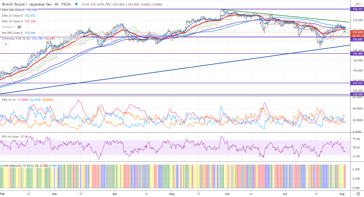 The pair's immediate resistance is around 152.25, any violation above targets 152.65/153/153.50. Significant bullish continuation if it breaks 156.60. On the lower side, near-term support is around 151.40. Any indicative violation below targets 150.60/150/149.