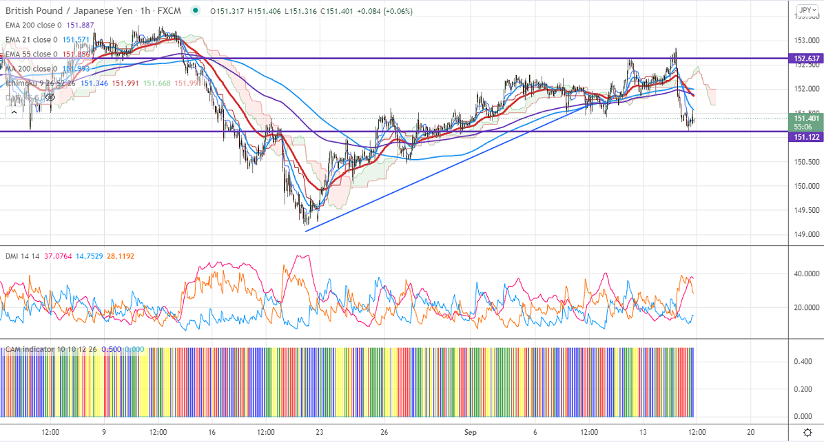 The pair's immediate resistance is around 151.80, any surge above targets 152.30/152.85/153/153.50/154.10. Significant bullish continuation if it breaks 153.50. On the lower side, near-term support is around 151. Any indicative violation below targets 150.45/150/149.