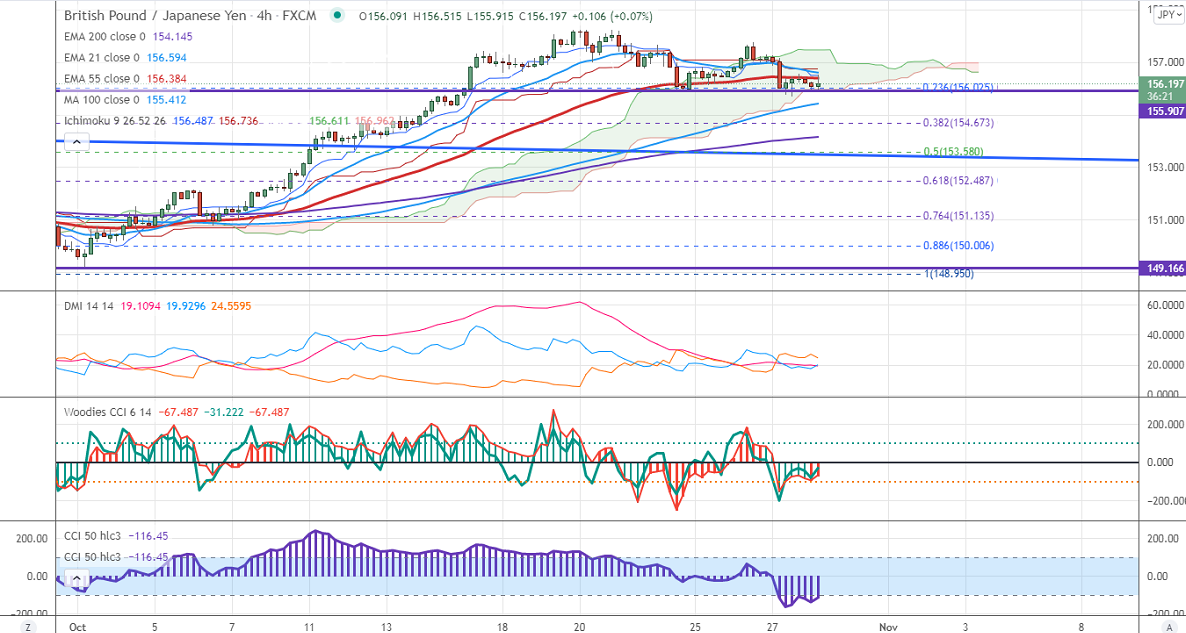 GBPJPY continues to trade weak and has broken the previous week's low 155.90. It hits a low of 155.70 and is currently trading around 156.38.