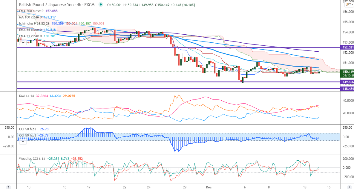 GBPJPY has declined more than 50 pips from a high of 150.75 despite upbeat UK jobs data. According to ONS, the number of people who have filed for unemployment benefits has declined to -49.8k compared to an estimate of -31.5k and the unemployment rate came at 4.2% in line with estimates. The intraday trend is neutral as long as resistance 151.15 holds. The pound sterling is hovering around 1.3200 against USD on fear of death due to the Omicron virus in the UK. Any breach below 1.3180 confirms intraday bearishness. GBPJPY hits an intraday low of 149.76 and is currently trading around 150.144.