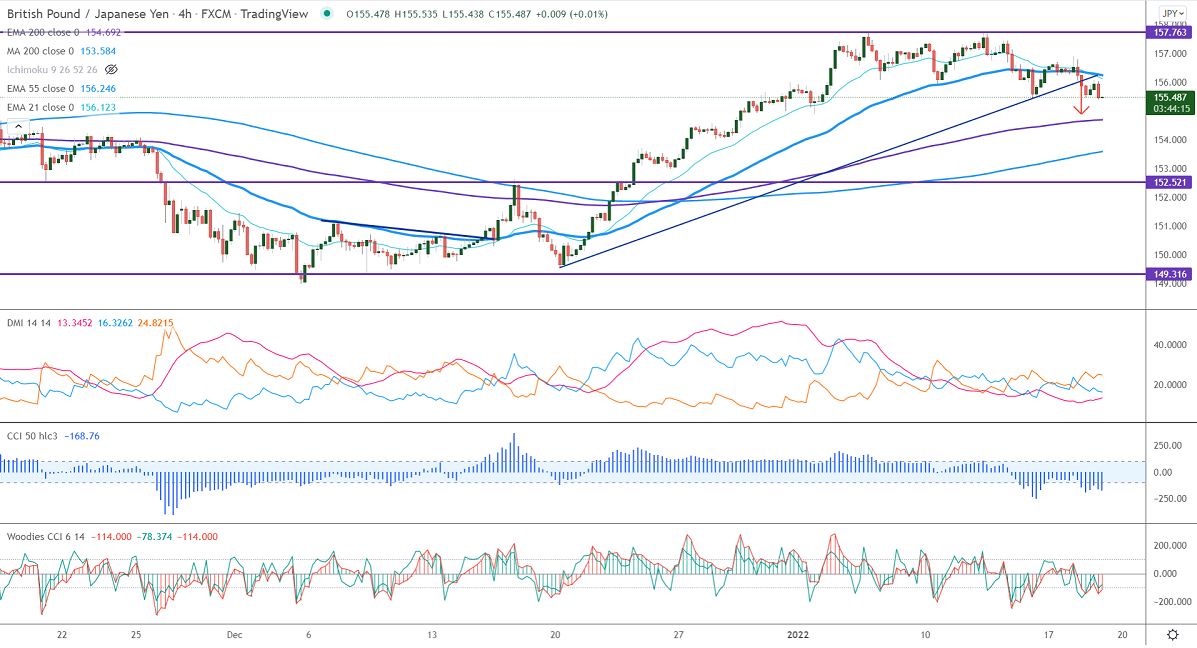 The immediate resistance is around 156.10, any break above targets 156.65/157.75/158/158.50. Significant bullish continuation if it breaks 158.50. On the lower side, near-term support is at 155.40. Any indicative violation below targets 154.70/154.