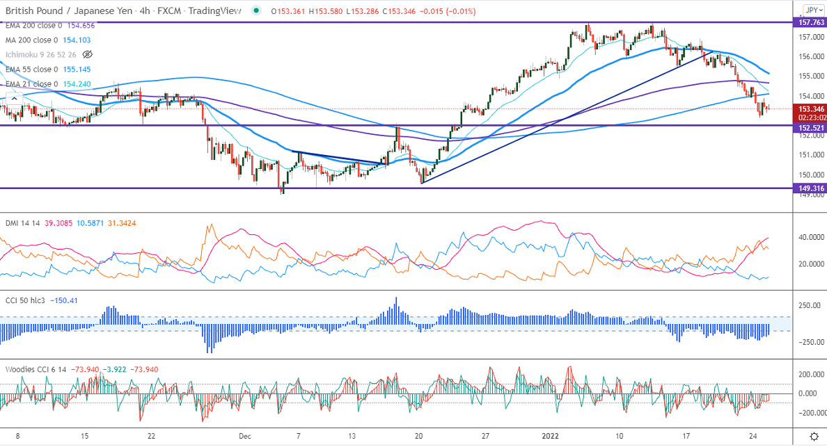 The immediate resistance is around 154.20, any break above targets 154.70/155.25/156.10. Significant bullish continuation if it breaks 158.50. On the lower side, near-term support is at 152.85. Any indicative violation below targets 151.95/150.