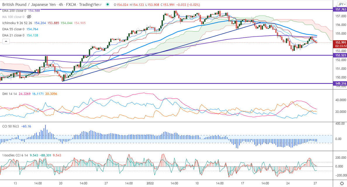 The immediate resistance is around 154.20, any break above targets 154.75/155.25/156.10. Significant bullish continuation if it breaks 158.50. On the lower side, near-term support is at 152.85. Any indicative violation below targets 151.95/150.